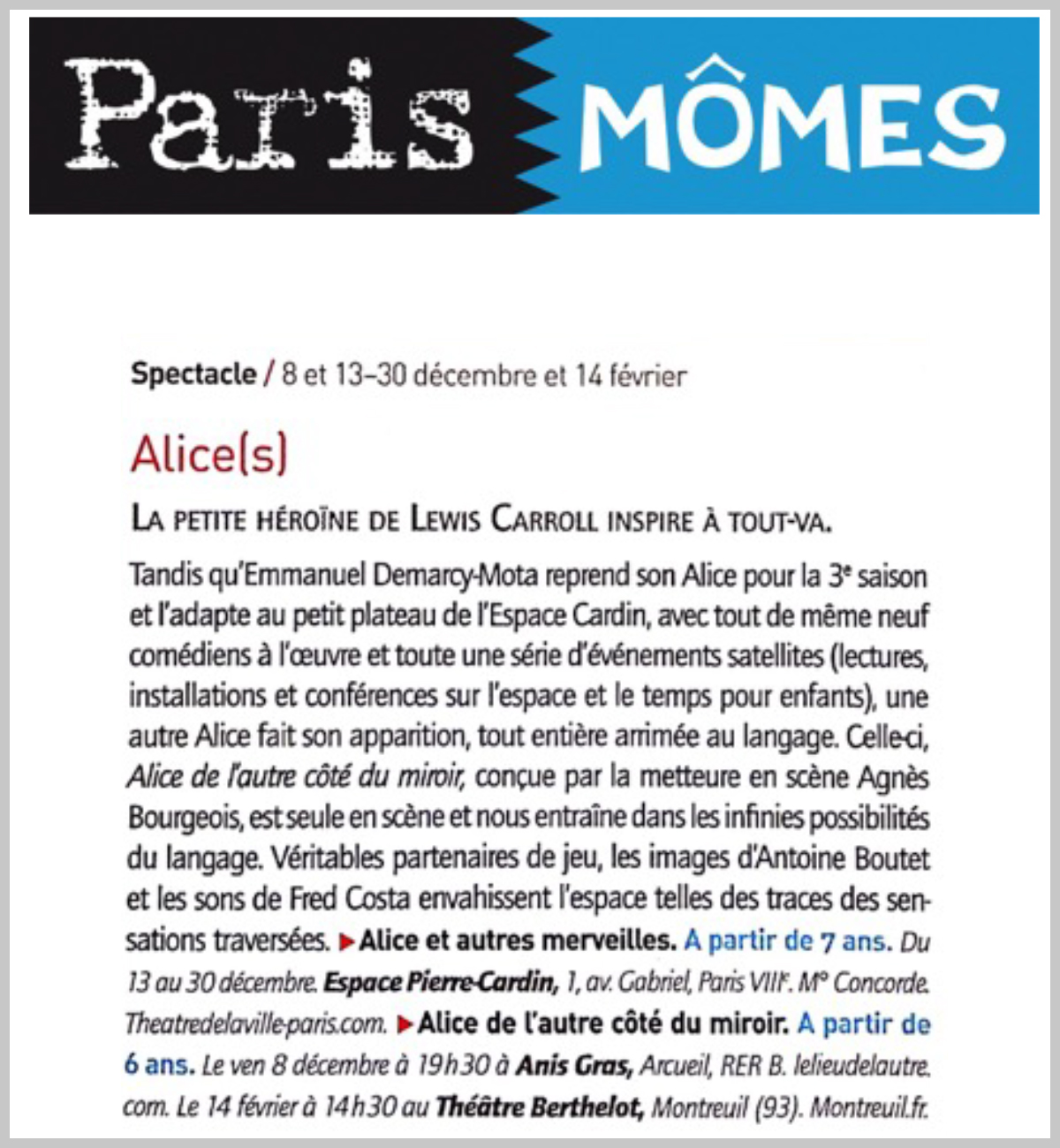 d’après Lewis Carroll, mise en scène Agnès Bourgeois