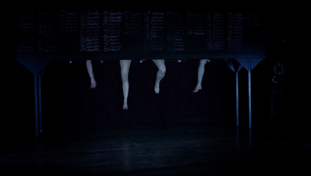 Ce spectacle, sous-titré Opus 3 : Violence du désir, s’appuie exclusivement sur le texte « Les 120 journées de Sodome » de Sade. C’est le troisième volet de notre projet à TABLE. A la suite de Opus 1 : Etant donnés… et Opus 2 : Dévoration, il poursuit notre plongée dans les ténèbres de l’âme humaine.