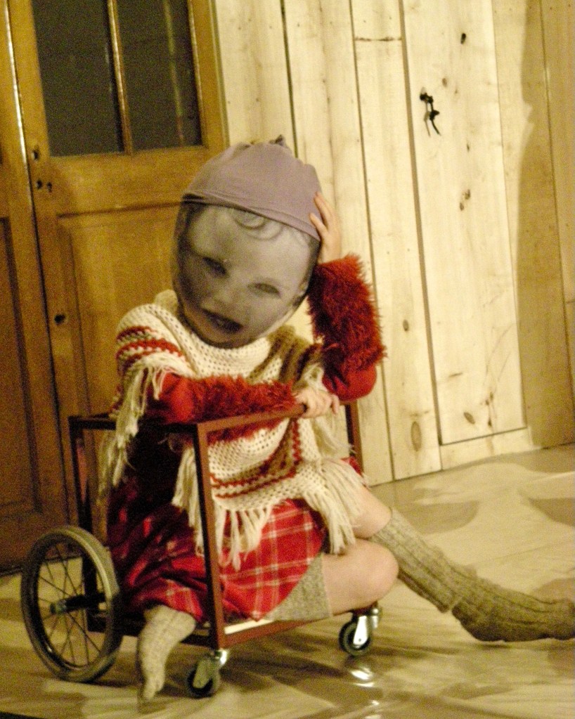 « A la veille de Noël, les enfants se baignent. Une commode, aussi, qui se tient là. A droite de la porte, les cuisiniers saignent des poulets et saignent des porcelets. Des nurses, des nurses, des nurses qui lavent les enfants Au mur, à gauche de la porte, est pendue une pendule. Il y a dessus neuf heures du soir. »