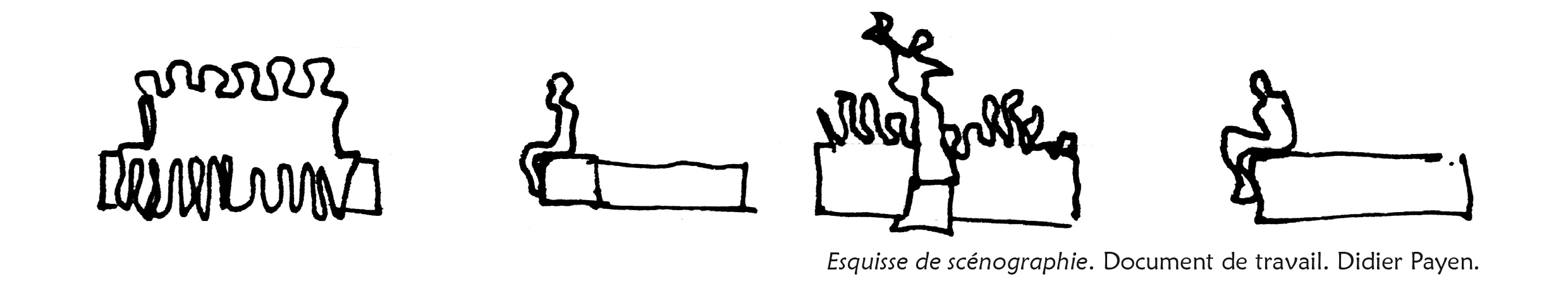 Dans la composition théâtrale, notre travail doit consister à rendre perceptible le sens au-delà de l’entendement. Que cela passe par le rire, l’effroi, les larmes ou le rejet, le théâtre exigé par cette poésie adviendra si, à l’image de ses occupants, nous cherchons, dans cette communauté d’espace et de temps, à entrevoir l’invisible dans un moment d’éphémère existence.